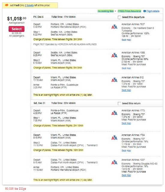 I’m currently looking to take a flight from Portland to Guadeloupe (in the Caribbean).